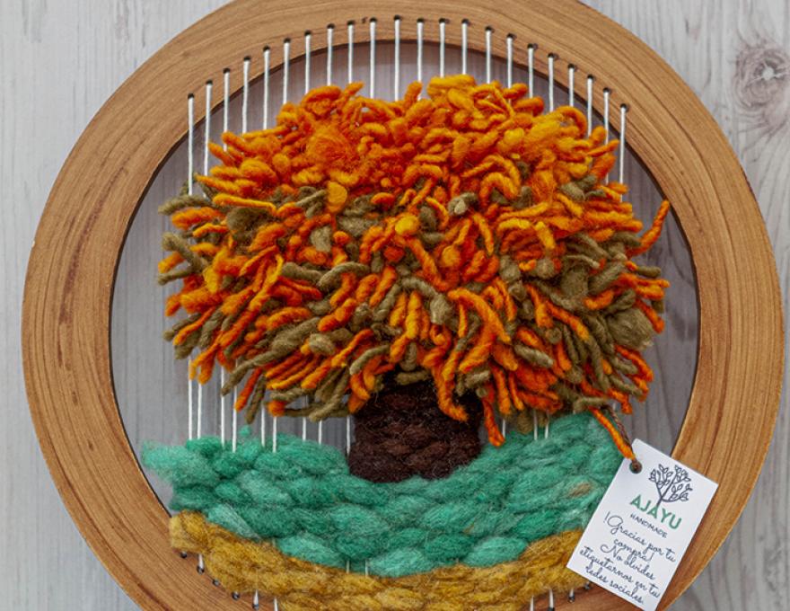 Soy una orgullosa mujer Aymara dedicada a la artesanía, mi abuela me enseñó a tejer. Con los años aprendí a tejer en telar y hacer cuadros decorativos, hoy tengo este negocio. Mi negocio se llama “Ajayu” y significa arte para el alma, intento reflejar la identidad de mi territorio en mi trabajo.